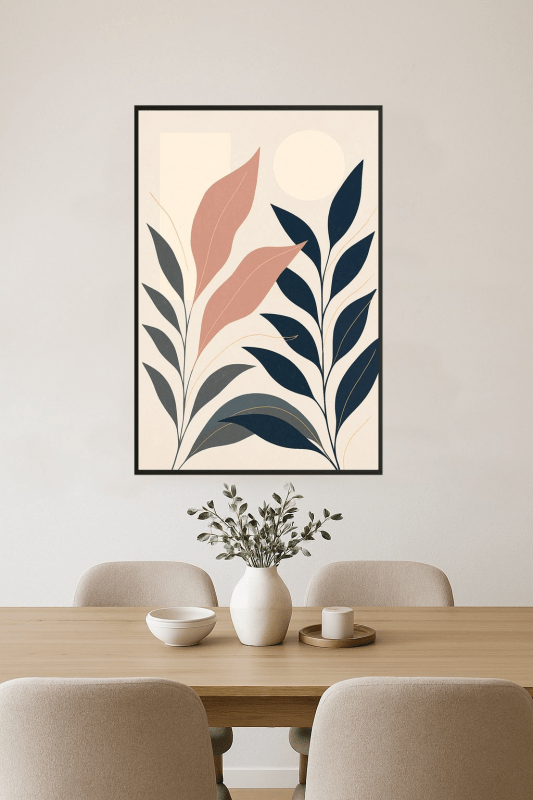 Plakaty boho zachwycają paletą kolorystyczną opartą na barwach ziemi: dominują w nich ciepłe beżowe odcienie, brązy, zgaszone zielenie oraz pudrowe róże. Często utrzymane są w subtelnych, stonowanych barwach, które tworzą atmosferę spokoju i harmonii we wnętrzu. Jeśli jednak lubisz odrobinę kontrastu, w naszej ofercie znajdziesz też projekty z bardziej wyrazistymi akcentami – na przykład ze złotymi, rdzawymi czy turkusowymi detalami – które doskonale ożywiają przestrzeń i stanowią efektowny kontrast na tle jasnych ścian.