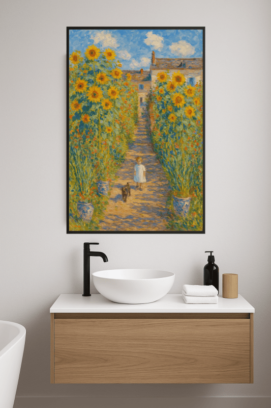 Przy wyborze plakatów do kuchni warto zwrócić uwagę na kwestie praktyczne, takie jak odpowiedni rozmiar i sposób oprawy. Duży plakat formatu A1 lub 50x70 cm będzie dominującym akcentem na ścianie – sprawdzi się, jeśli masz sporą, pustą powierzchnię do zagospodarowania. W mniejszych kuchniach lepiej postawić na kilka mniejszych plakatów (np. A4 lub 30x40 cm), które można rozmieścić w różnych miejscach bez przytłaczania wnętrza. Ważne, aby proporcje były dopasowane: na rozległej ścianie mały obrazek „zginie”, a na wąskim pasku ściany ogromny plakat może wyglądać zbyt ciężko. Przy planowaniu galerii z kilku plakatów zachowaj między nimi odstępy i ewentualnie wyrównaj górną lub dolną krawędź, by całość wyglądała harmonijnie.