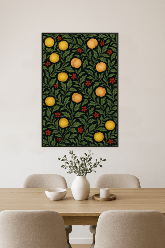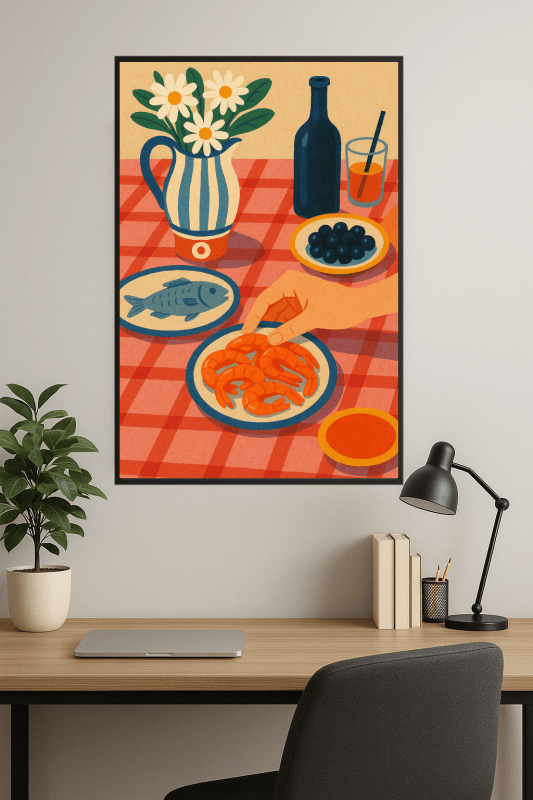 Dekorowanie ścian plakatami to świetny pomysł na wyrażenie siebie i pasji do gotowania. Plakaty kuchenne występują w wielu motywach – od apetycznych zdjęć potraw i składników, przez ilustracje warzyw, owoców i ziół, aż po zabawne napisy i cytaty związane z jedzeniem. Dzięki takiej różnorodności z łatwością dopasujesz wzór do twojej kuchni oraz upodobań. Na przykład plakaty z ulubionymi przepisami lub grafikami prezentującymi przepisami krok po kroku mogą stać się praktycznymi dekoracjami, które jednocześnie pełnią rolę kulinarnych przewodnikami. Z kolei typograficzne plakaty z humorystycznymi napisami („Bon Appétit”, „Kitchen Rules” itp.) świetnie sprawdzą się, by wprowadzić do wnętrza odrobinę uśmiechu i luzu.