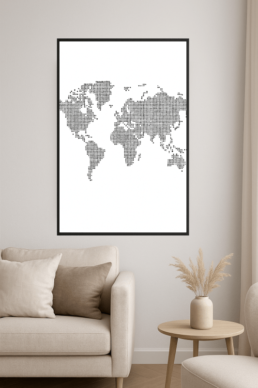Black Dot World Map Art