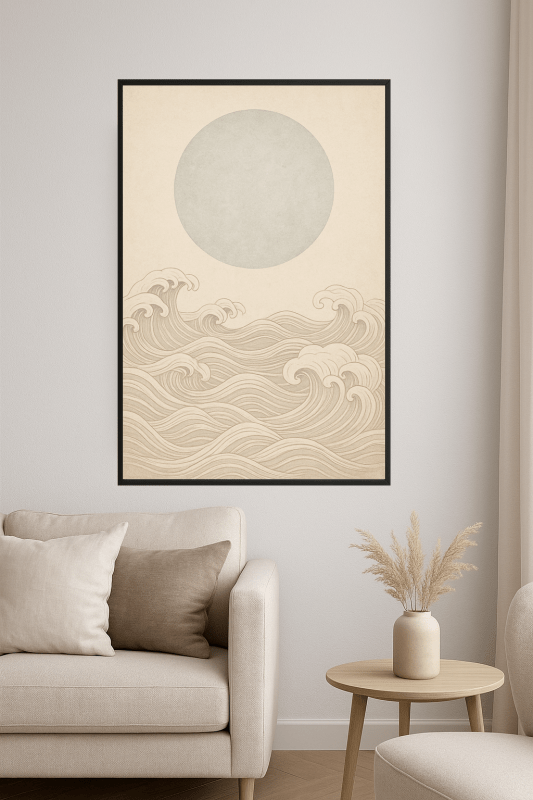Textured Moon and Wave Art