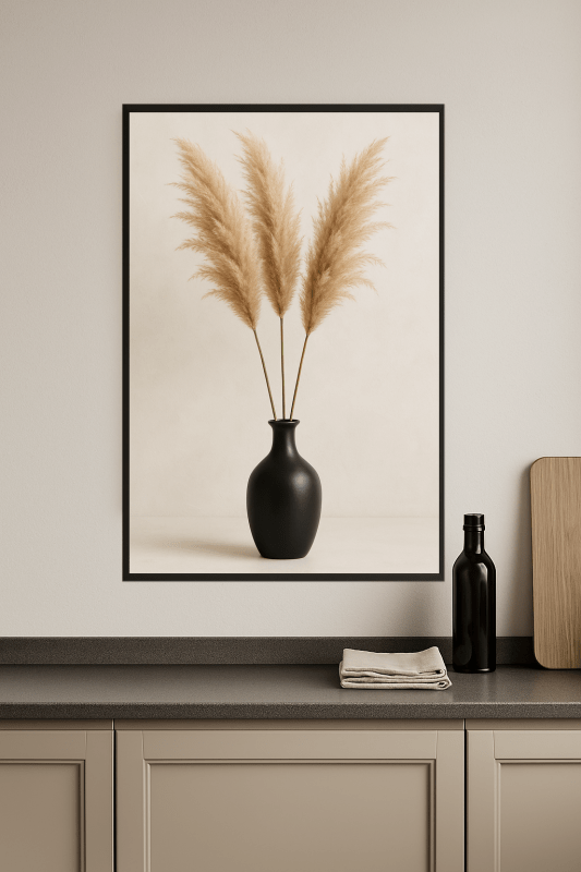 Pampas Grass in a Black Vase