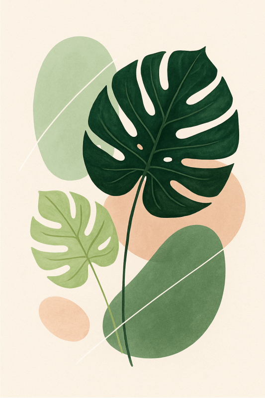 The boho poster collection draws on the diversity of patterns offered by this style. You'll find botanical motifs—leaves, flowers, and grasses—along with ethnic prints and designs inspired by oriental aesthetics. Abstract shapes and symbols inspired by nature, such as the sun, moon, and mountains, are also popular, lending the decorations a deeper meaning.