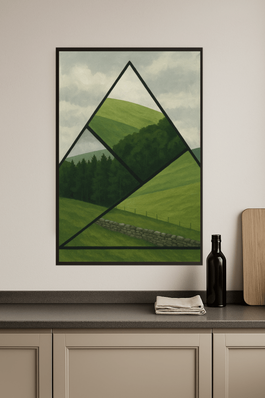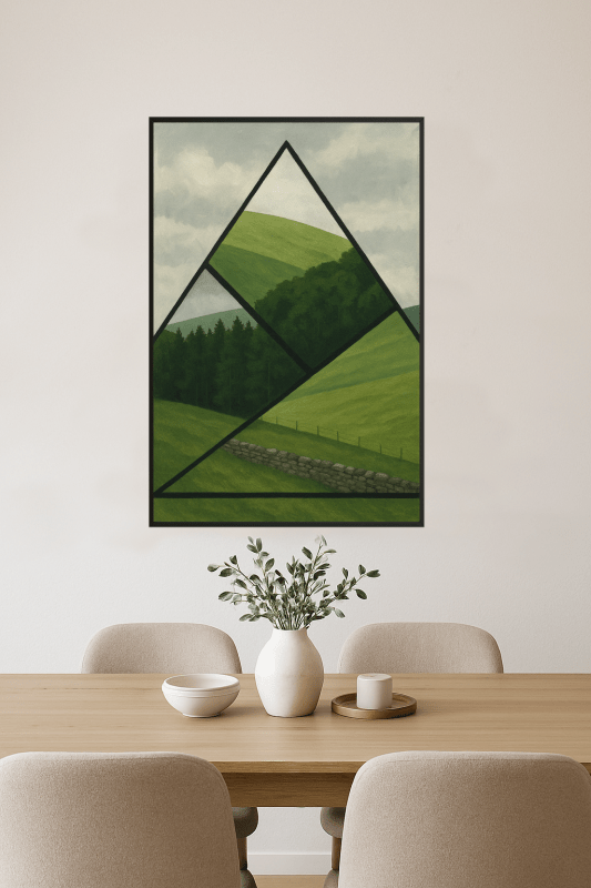 Opraw i udekoruj ścianę elegancką grafiką geometryczną.
